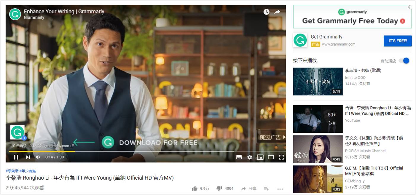 1、 True View 插播广告(True View In-Stream)